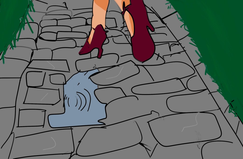 Finally, they reached the courtyard of their school, a cobblestone area surrounded by foliage that led into the gymnasium. The cobblestones were aged and many were broken; clearly the school was due for a facelift, but it apparently wasn’t a priority. Walking on the uneven surface was difficult with her high heels, and she had to walk slowly to avoid twisting her ankle.