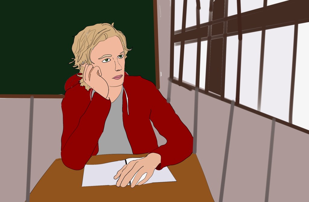 Of course, her sense of peace was put to the test when the first day of the school year came around and she discovered, to her displeasure, that he was in her homeroom class. She tried not to let it bother her, but it was hard not to feel anything when she glanced over at him and all of the memories came rushing back. Seemingly against her will, her gazed traveled his face from the green eyes she had spent so much time staring into, to his endearingly freckled cheeks, to the familiar lips she used to call home. She averted her eyes as she felt the blood rush into her cheeks, so scarlet and incredibly embarrassing. But he seemed to be staring at her as well, and when she glanced up again, she realized that his gaze was fixed on her collarbone. She immediately recognized what he must have been staring at; Hanna had left a mark the last time she’d kissed her there, passionate as she was. Inez had teased her about it earlier that morning. Betty turned away quickly, feeling strangely guilty even though she knew that she’d had every right to be romantic with other people.